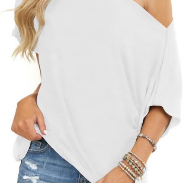 Women Off Shoulder Tops Short Sleeve Casual Loose Batwing Shirts d Blouse Tunic