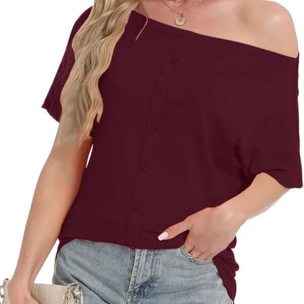 Women Off Shoulder Button Down Tops Summer Trendy Short Sleeve Loose Batwing Shirts d Blouse Tunic