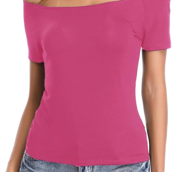 Women Slim Fit Short Sleeves Off The Shoulder Cropped Top