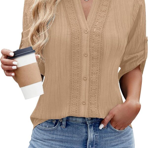 Women's Button Down Shirts Lace Crochet Dressy Casual Tops 3/4 Sleeve Work Summer Outfits 2024