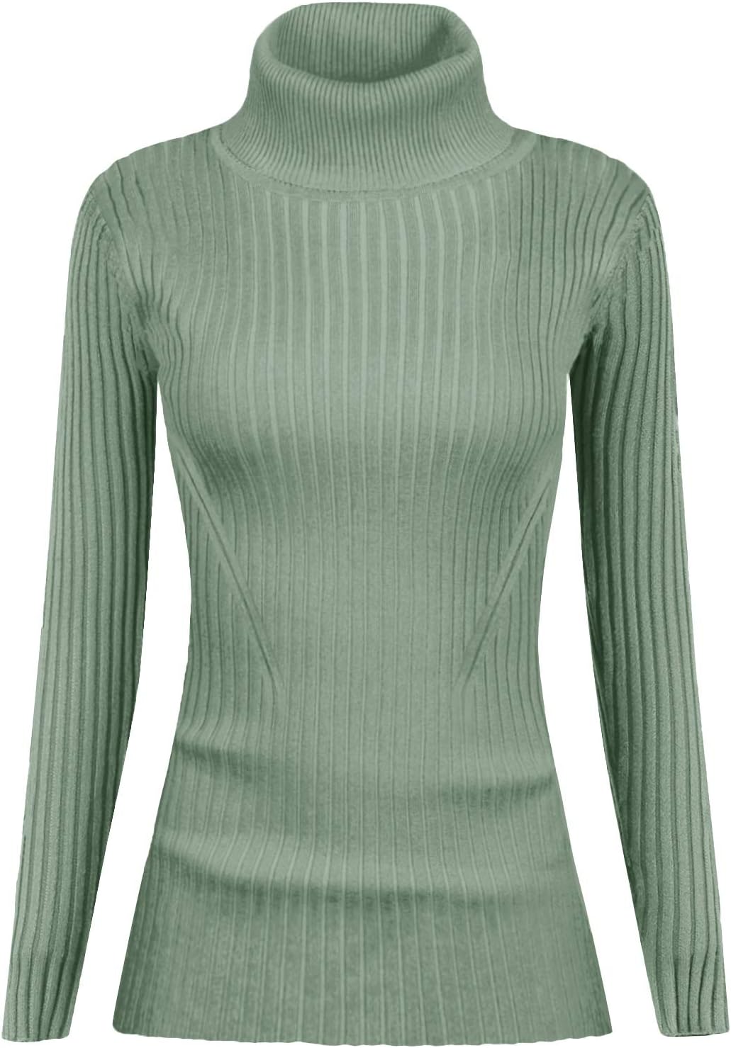 Turtleneck Ribbed Sweaters for Women Cute Sexy Knitted Warm Fitted Sweater