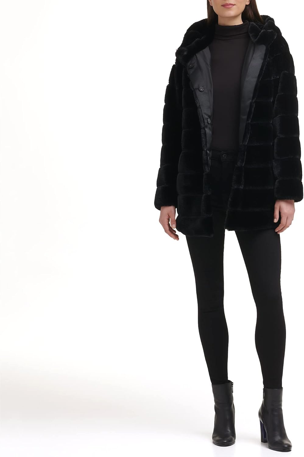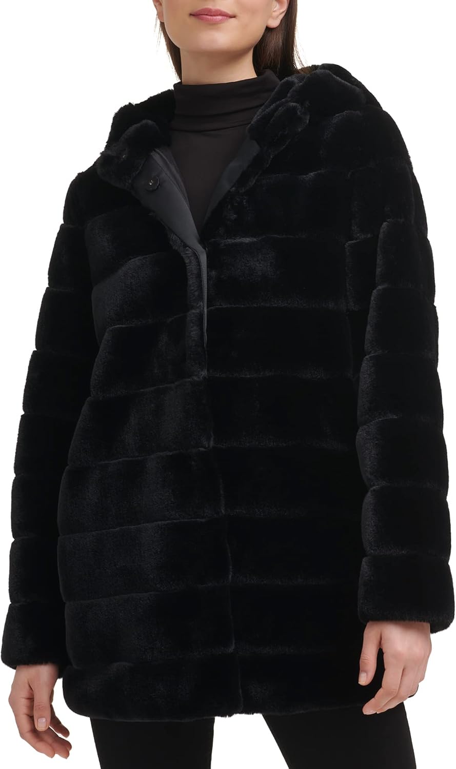 • Features: notch collar faux fur button front wubby, textured faux fur
