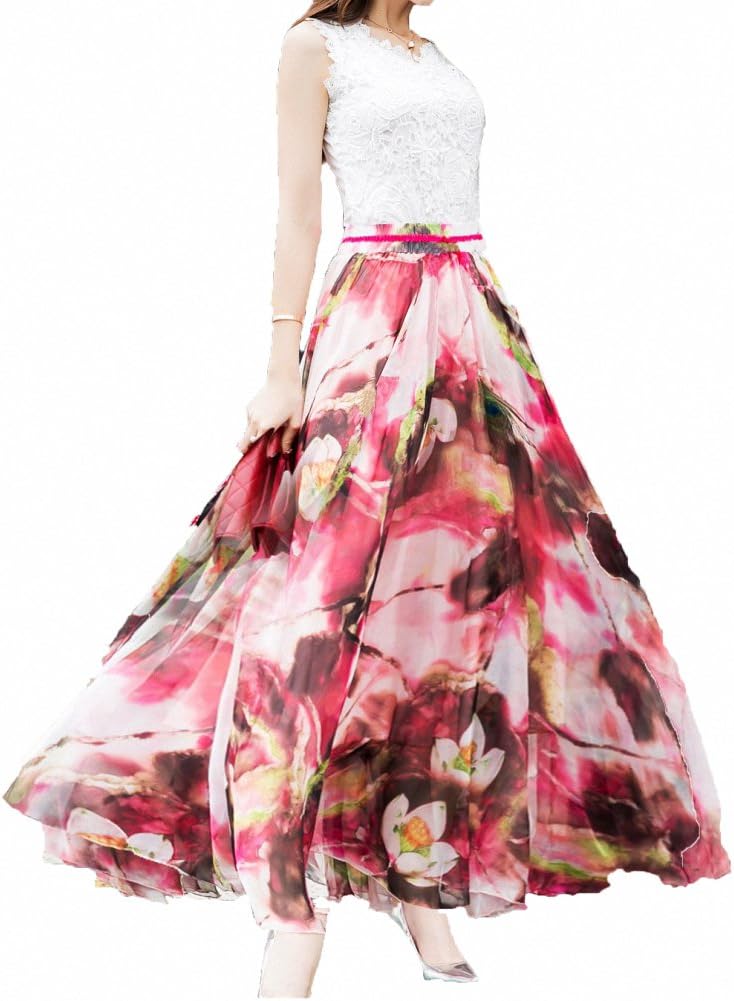 Women Full/Ankle Length Blending Maxi Chiffon Long Skirt Beach Skirt