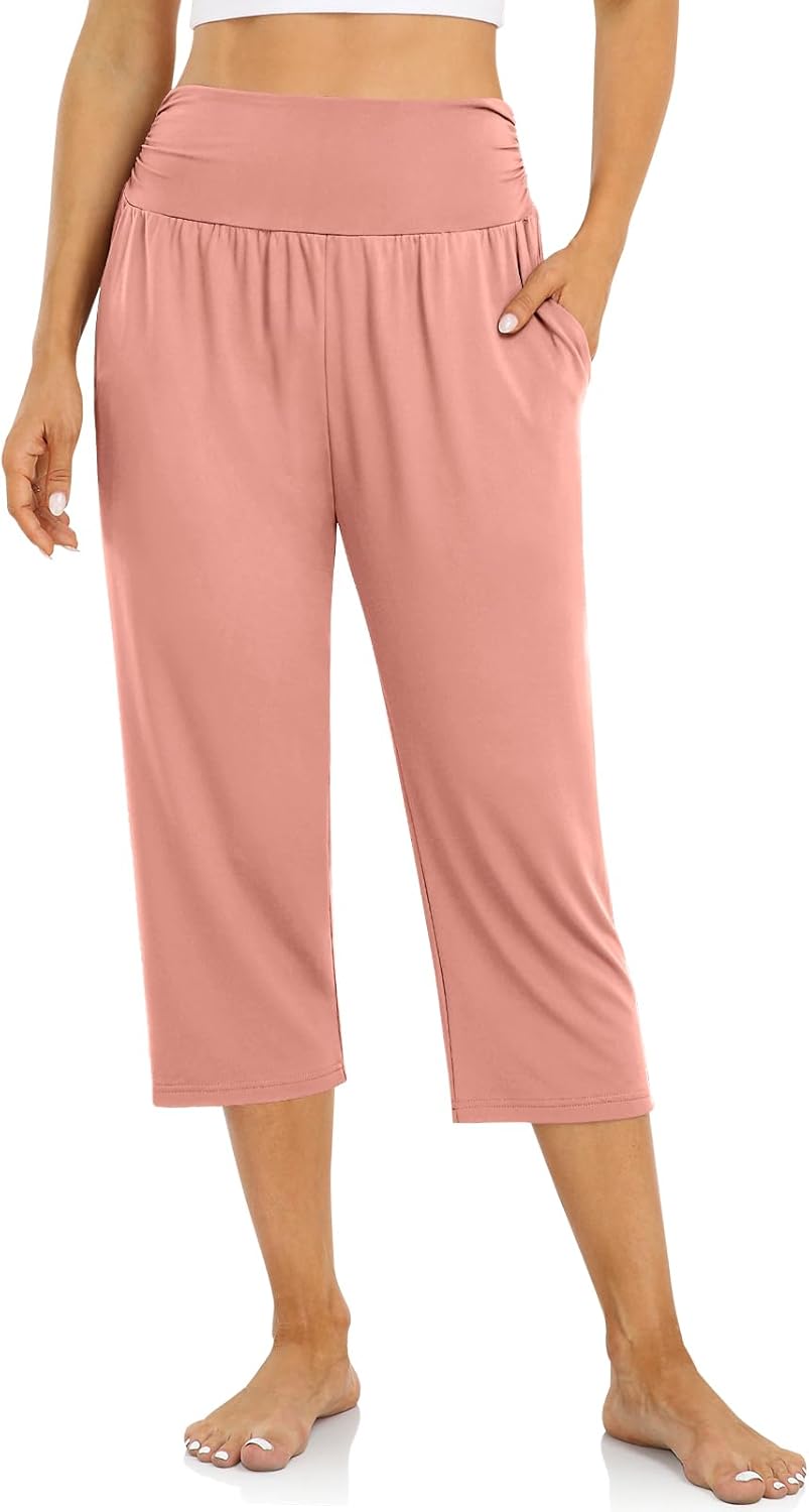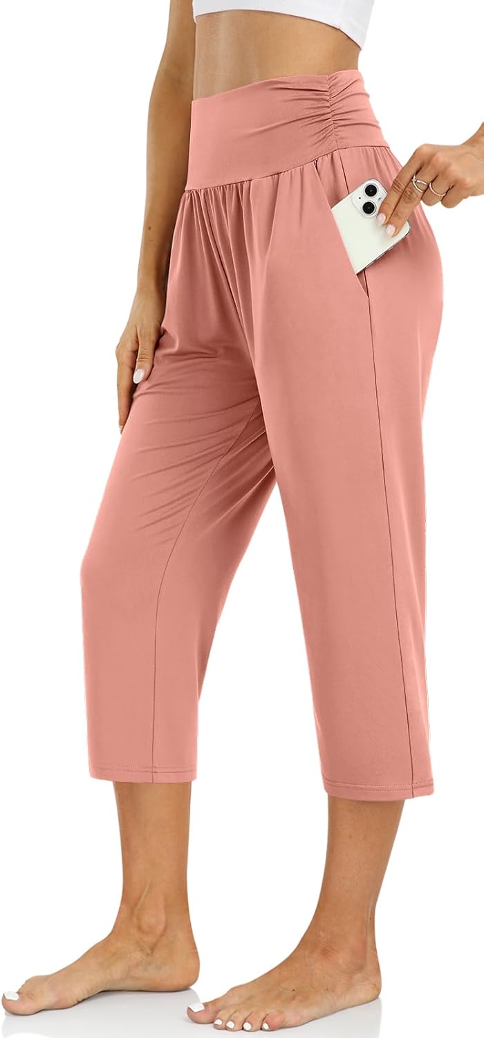 Women’s Capri Pants Summer Loose Yoga Pants Comfy Workout Cropprd Pants with Pockets