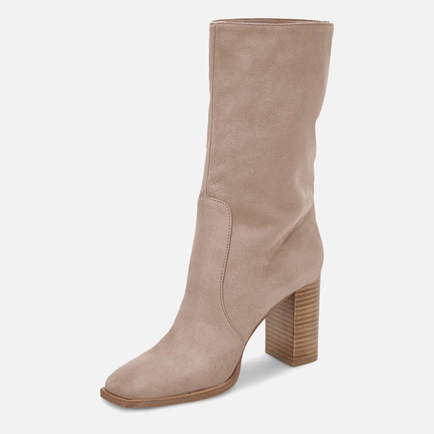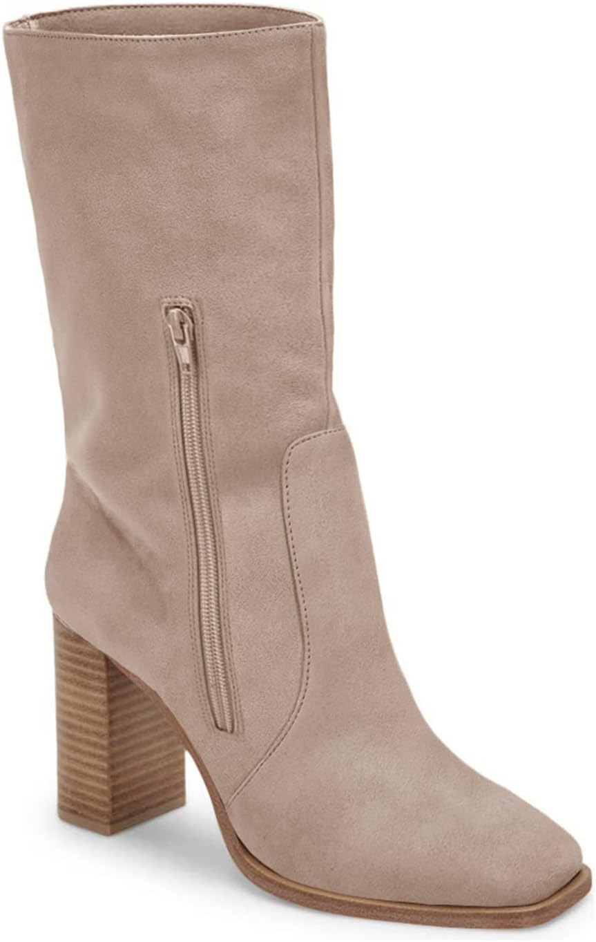 Women’s Mid-calf Boots Chunky Stacked Heel Square Toe Side Zipper Slip-on Suede Winter Booties