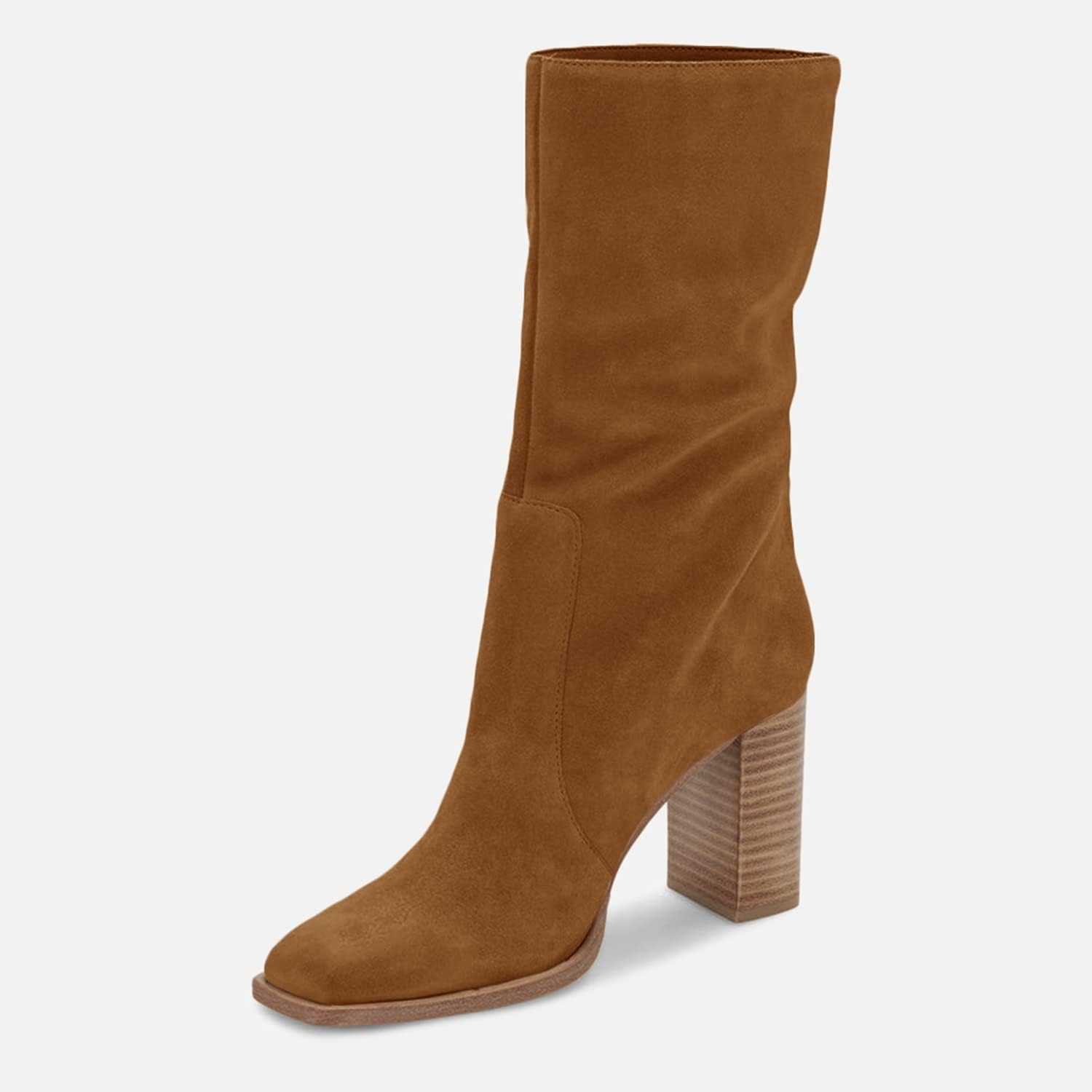 - 【FEATURES】Closed square toe boots for women, high block heel, casual side zipper, designed in fashion style, wide calf and easy to take on/off.