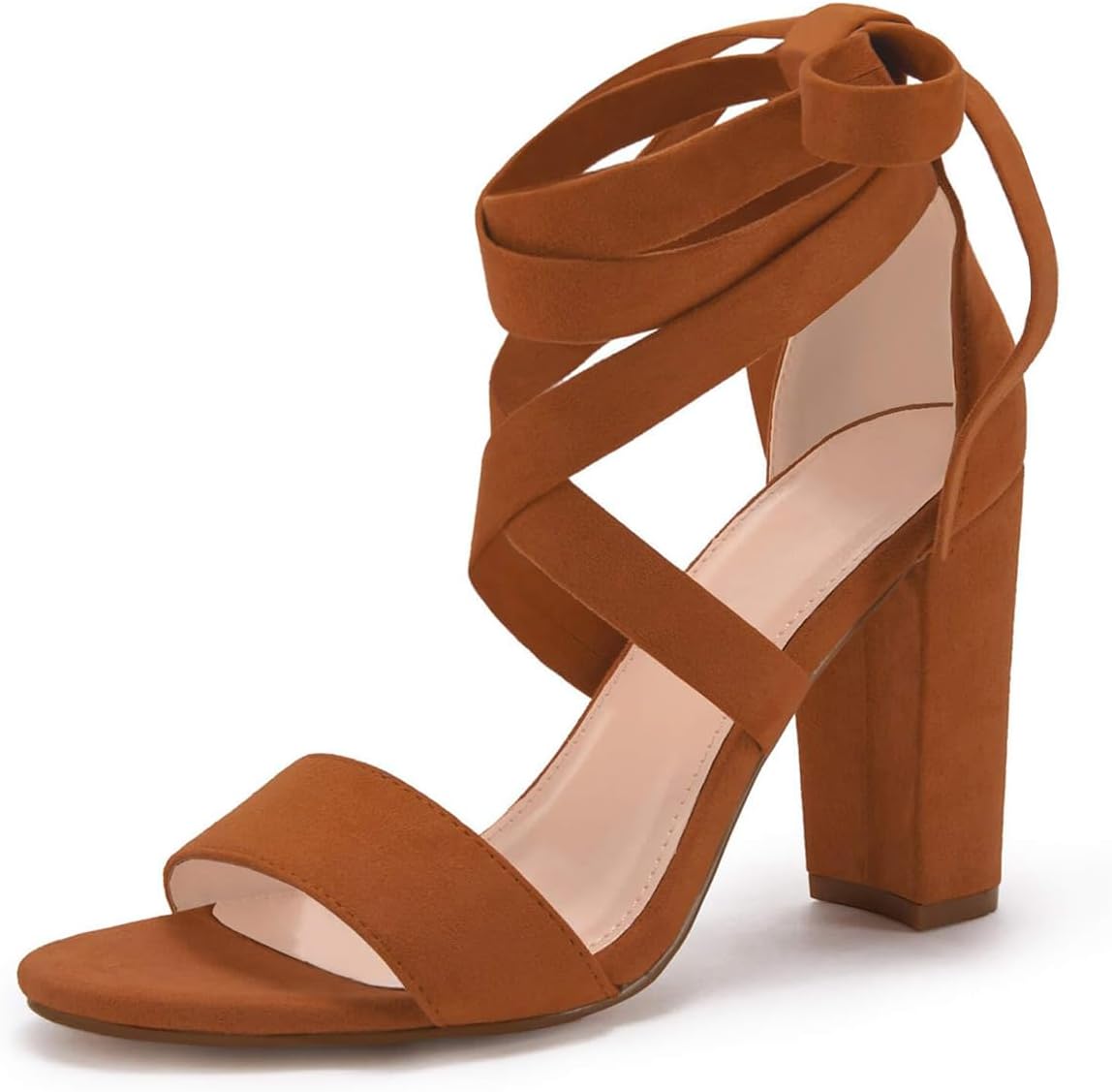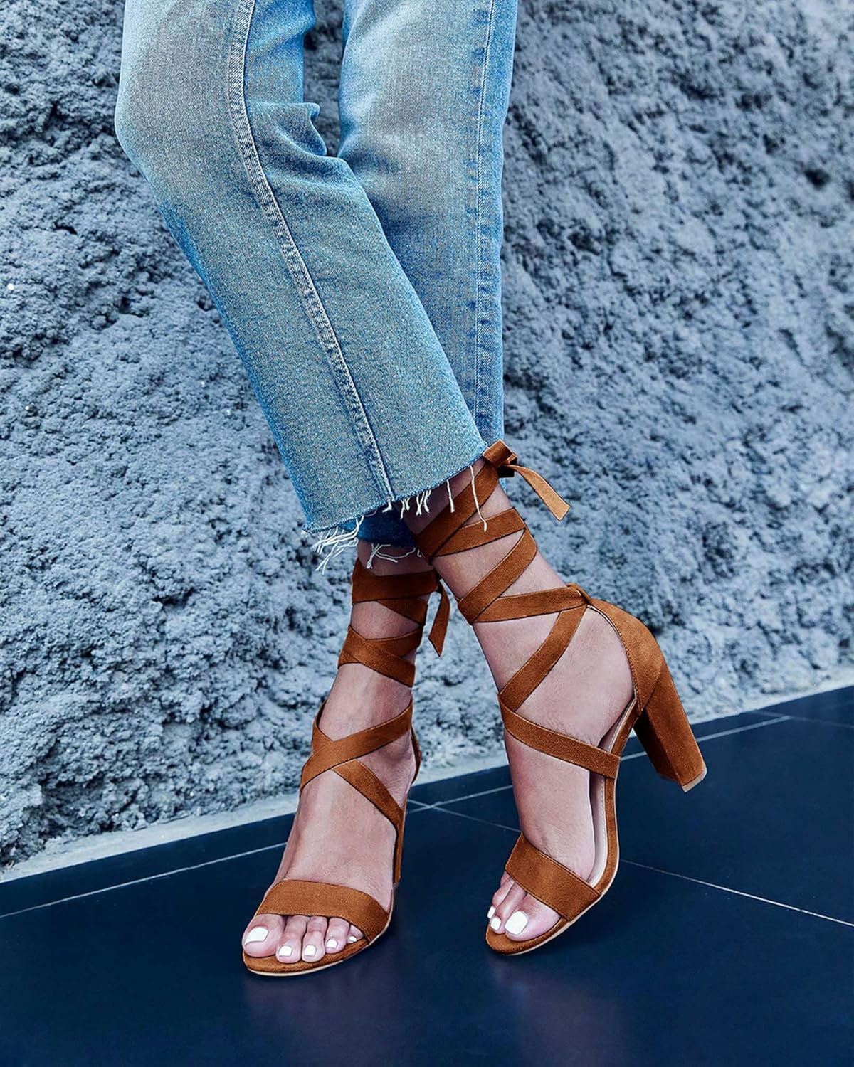 - Lace-up crisscross chunky block heel sandals featuring cute soft suede straps that tie your ankle strap to any shape you like